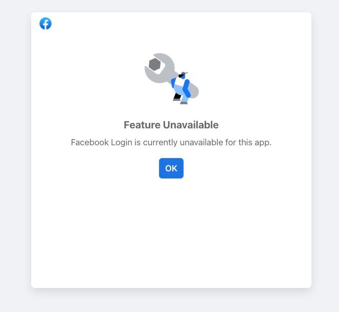 Помилка входу "Facebook Login is currently unavailable for this app"