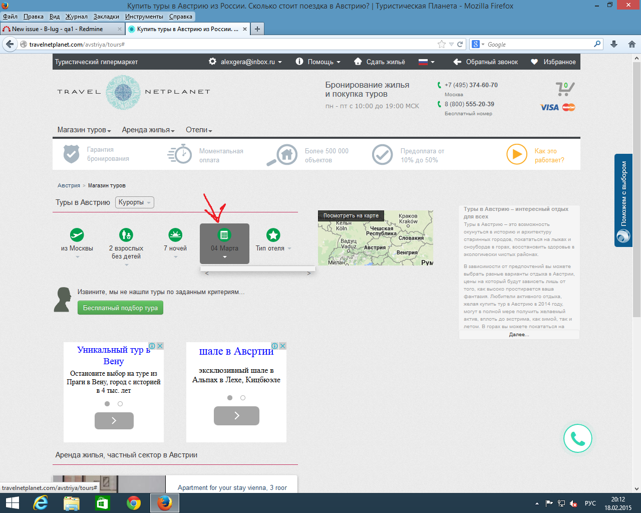 Не работает вкладка выбора даты в разделе "Магазин туров"