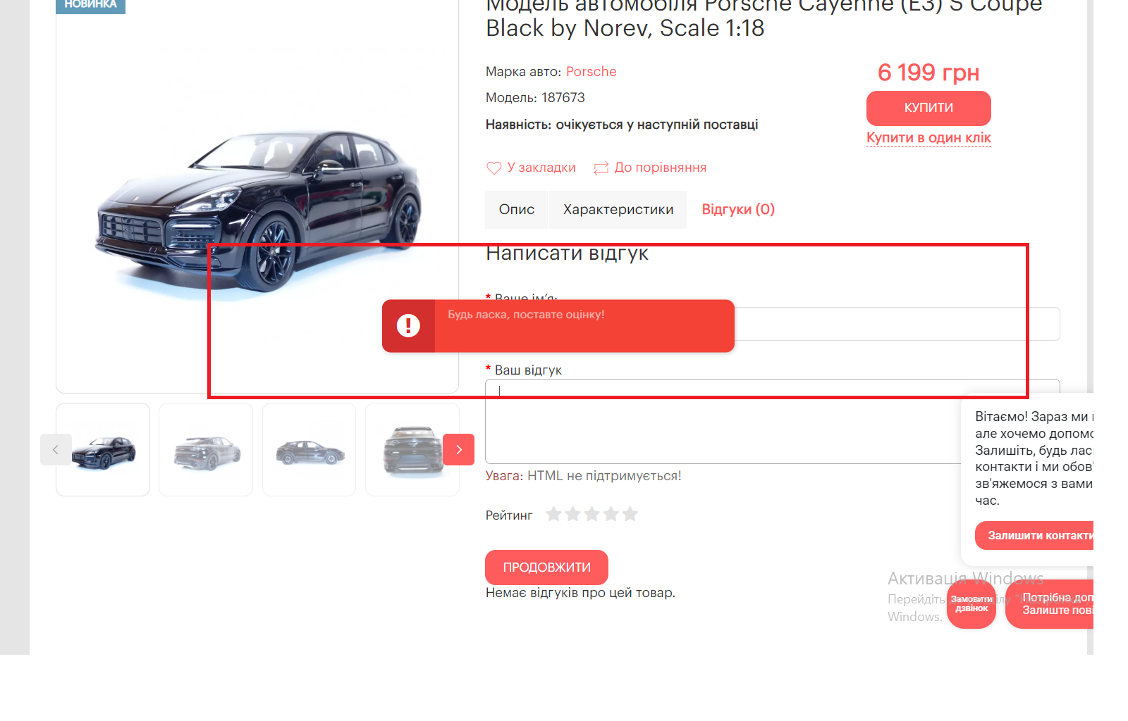 У вкладці "Відгуки" вспливає вікно та не ховається до наступного оновлення сторінки.