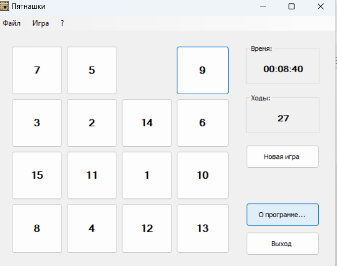 Не рухається плитка "9" в пустий слот коли знаходться в правому верхньому куті (хід 27)