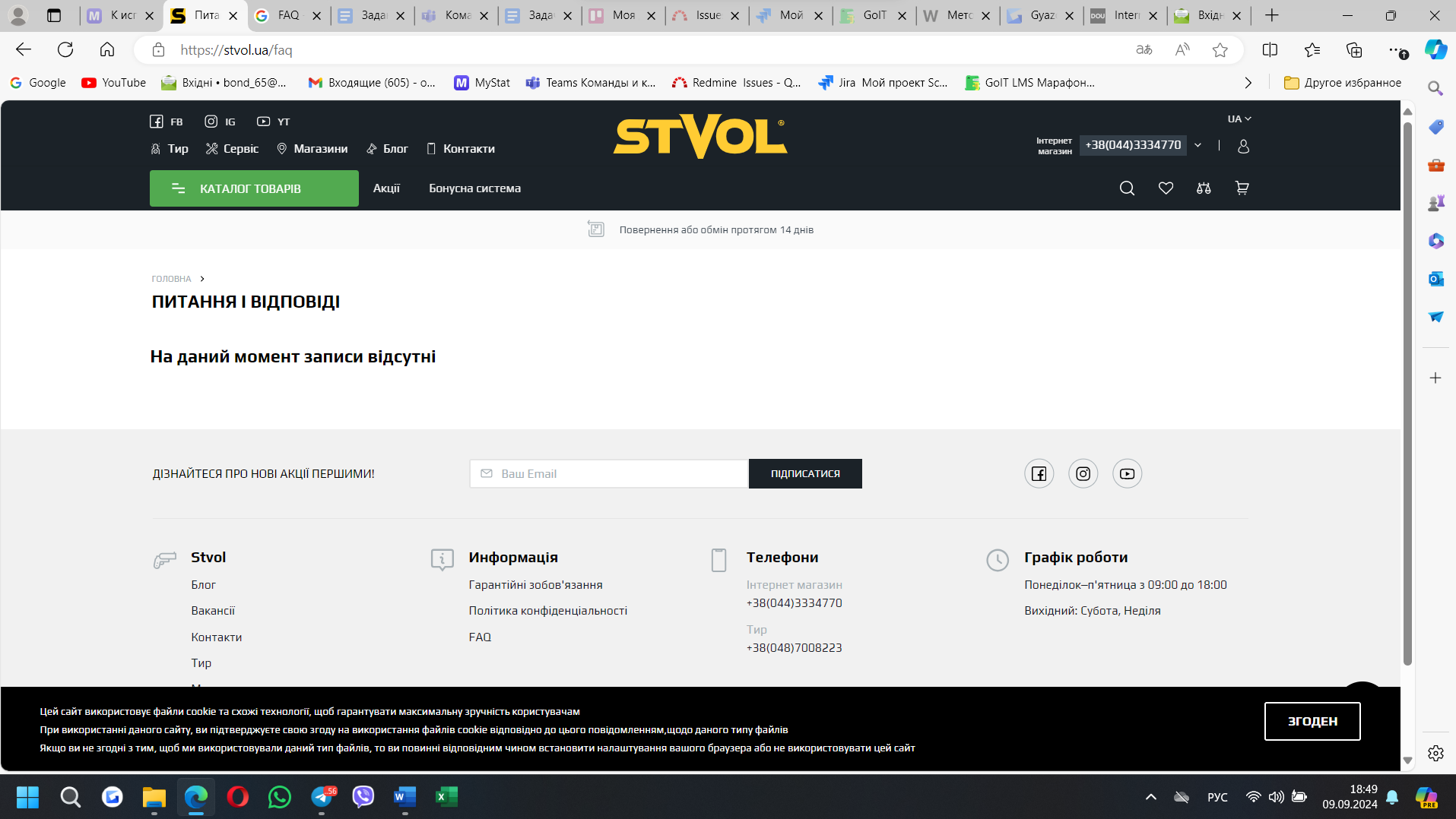 Фактический результат: При нажатии на ссылку «FAQ» в меню «Информация» в футере главной страницы сайт переводит на страницу «Вопросы и ответы», где записи отсутствуют
