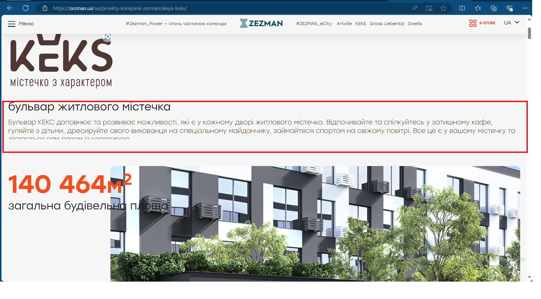 1. Перейти за посиланням - https://zezman.ua/ua/proekty-kompanii-zezman/aleya-keks/