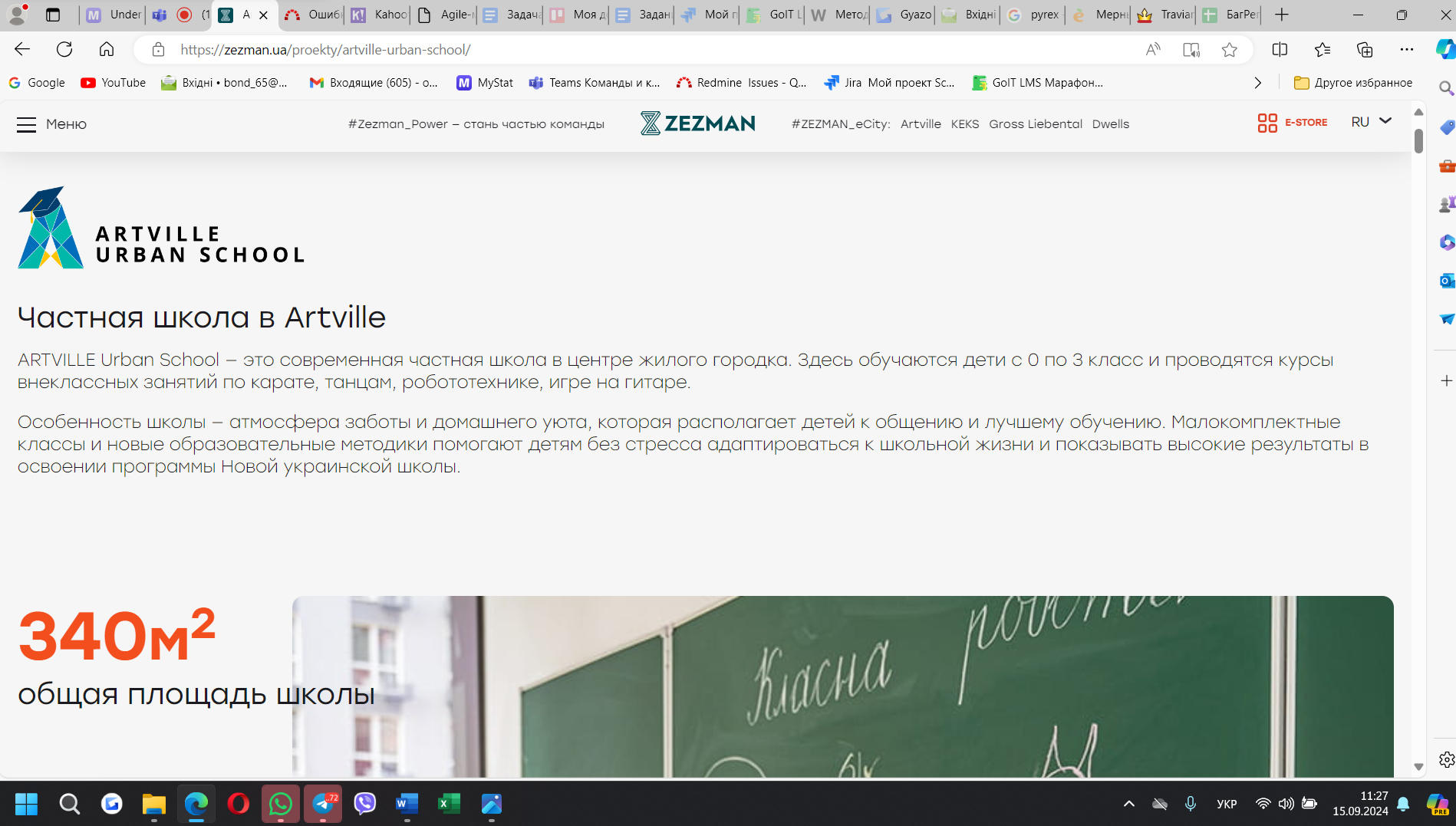 Фактический результат: При открытии окна «Urban School» в разделе «Міста Zezman» в футере главной страницы в украинской локализации открывается раздел с информацией по «Житловому містечку «Artville»
