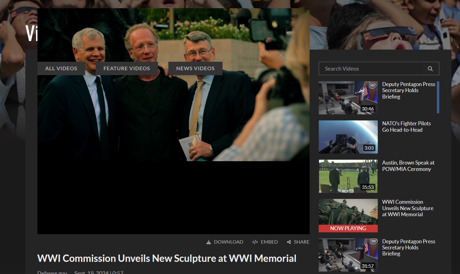 2. Открываем Multimedia > Videos https://www.defense.gov/Multimedia/Videos/