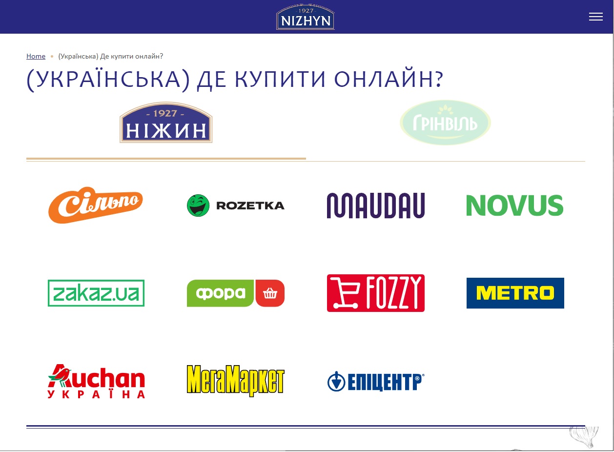 4. Перейти по ссылке нажатием кнопки "Де купити онлайн?" [[https://nezhin.ua/en/de-kupiti-onlayn/]]