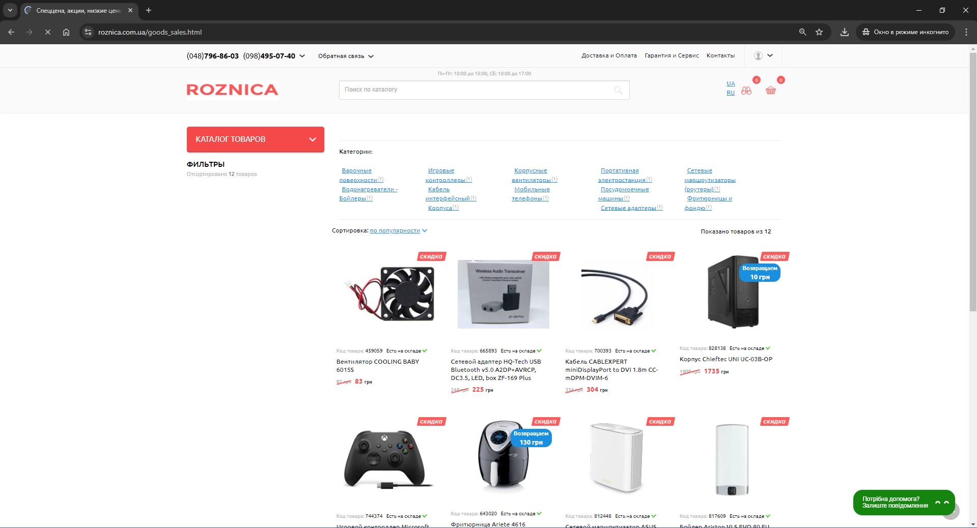 3. Pay attention to the content of the opened window (https://www.roznica.com.ua/goods_sales.html).