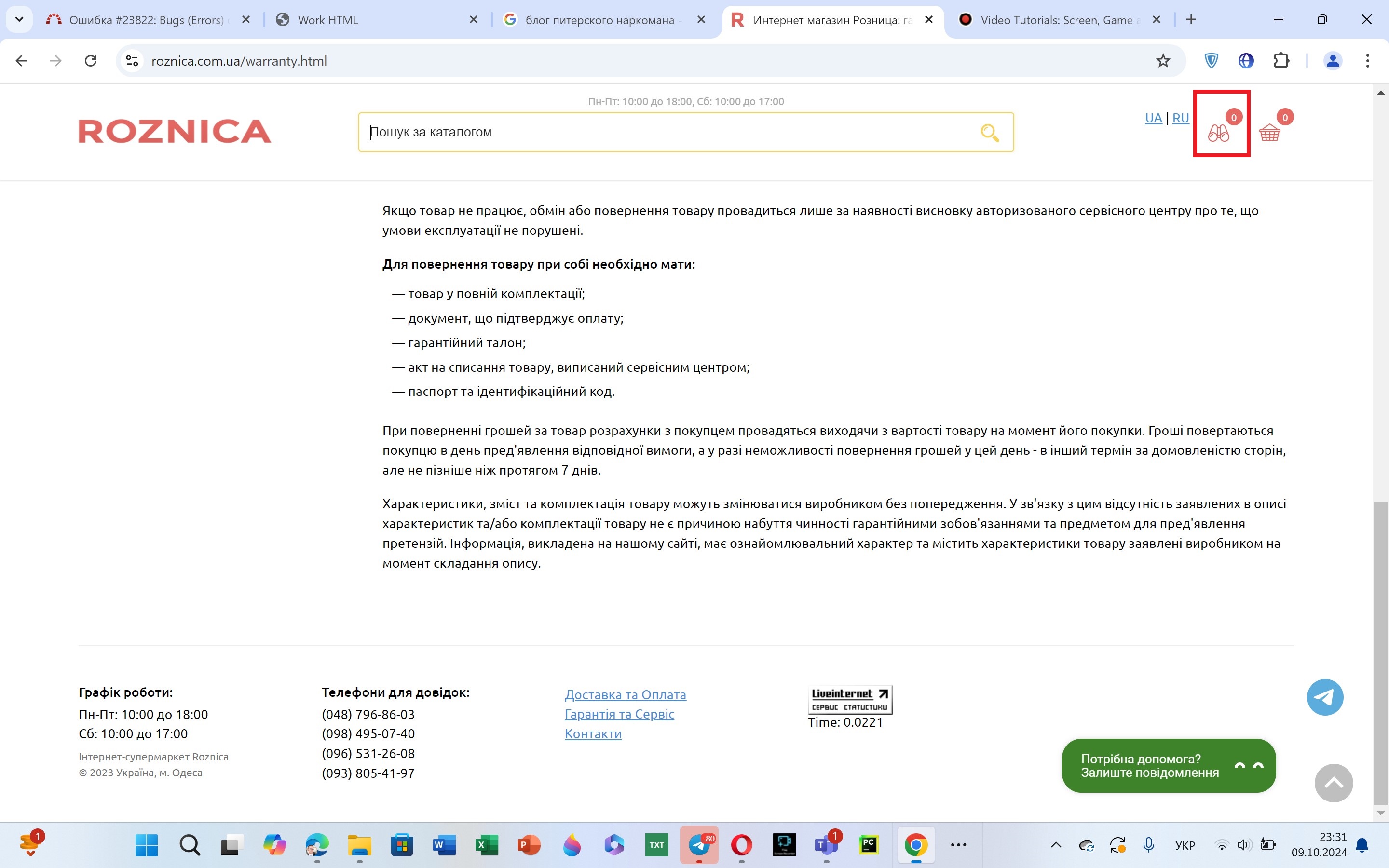 1. Open the website homepage https://www.roznica.com.ua/
