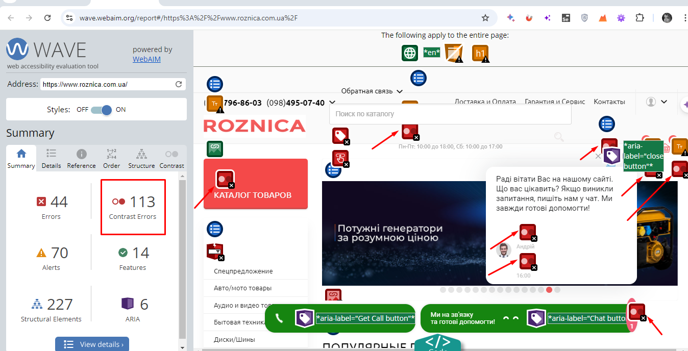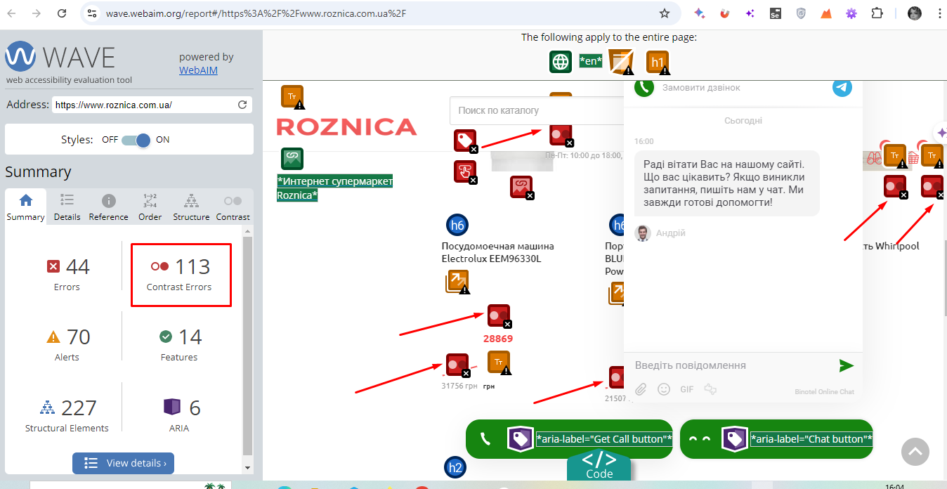 3. Звернути увагу на конкретні елементи, які порушують вимоги до контрастності.