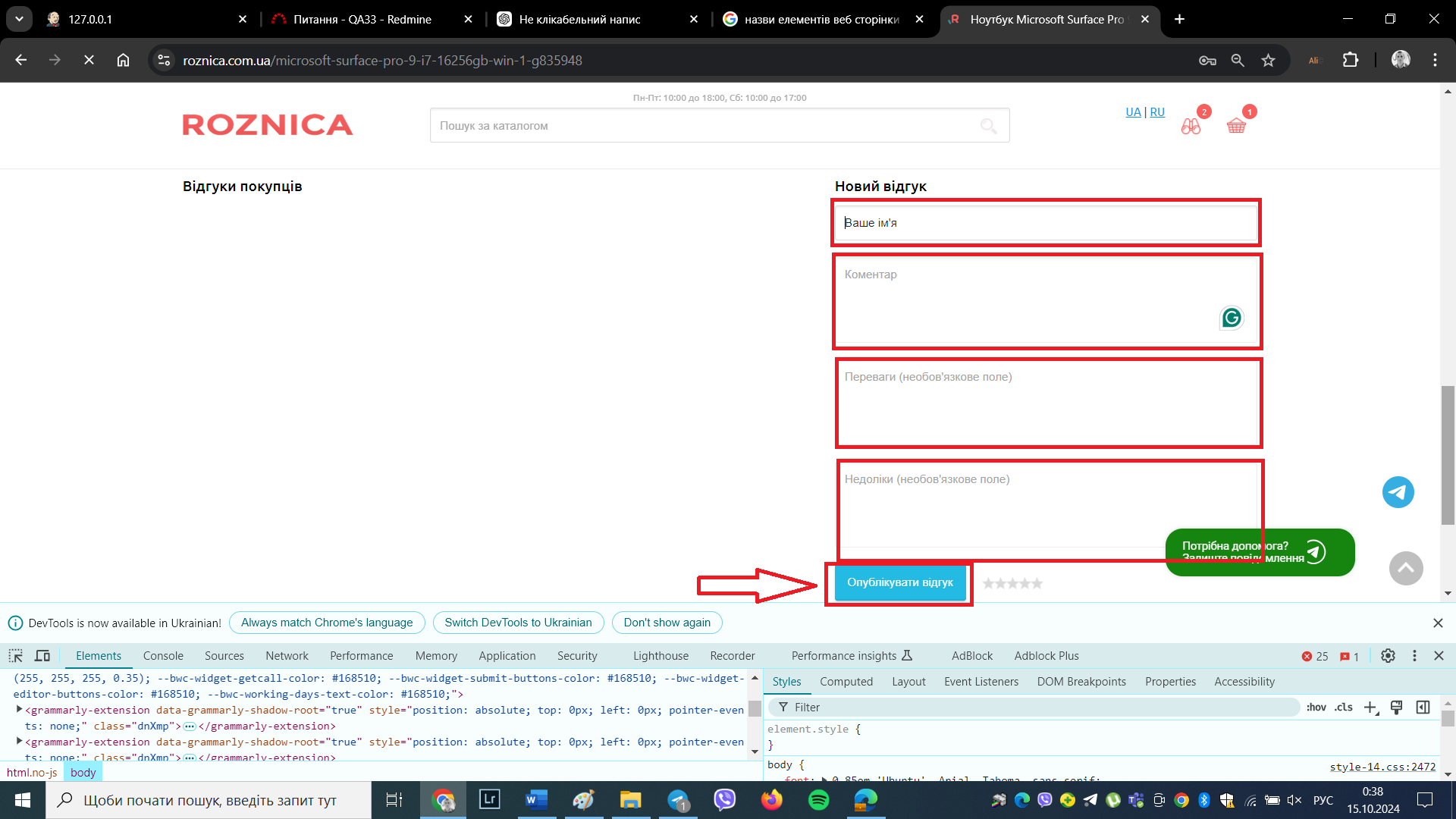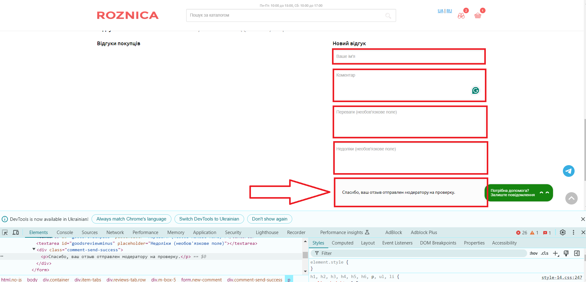 The comment is sent with blank fields on the sitehttps://www.roznica.com.ua/