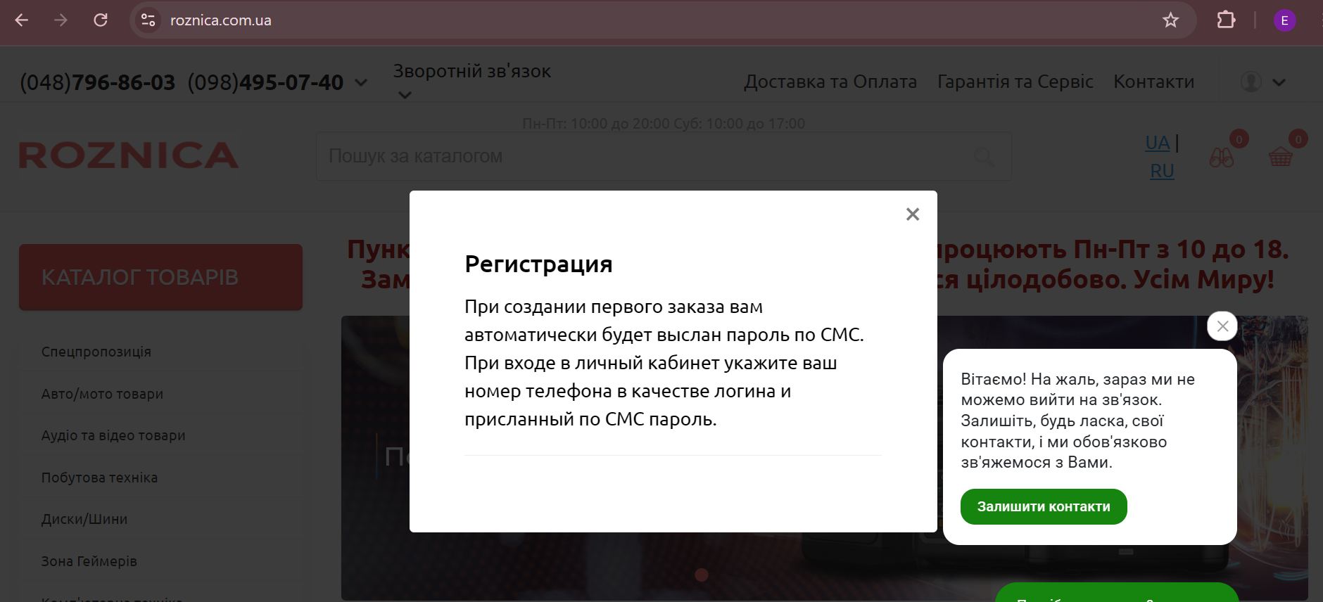 Неможливо здійснити реєстрацію на сайті при натисканні на кнопку "Реєстрація" у вкладці "Особистий кабінет"