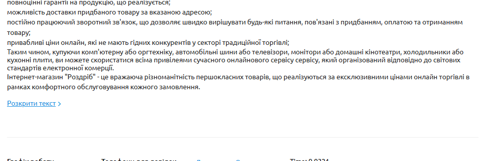 Кнопка "Розкрити текст" не змінює назву при зміні стану на "Закрити текст" для блоку "Інтернет-магазин ROZNICA" на головній сторінці