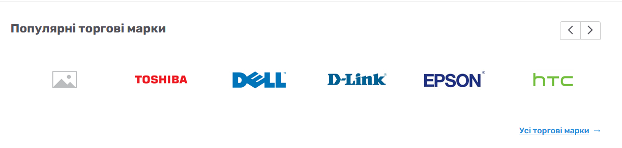 В блоці "Популярні торгові марки" відсутнє лого для першої торгової марки