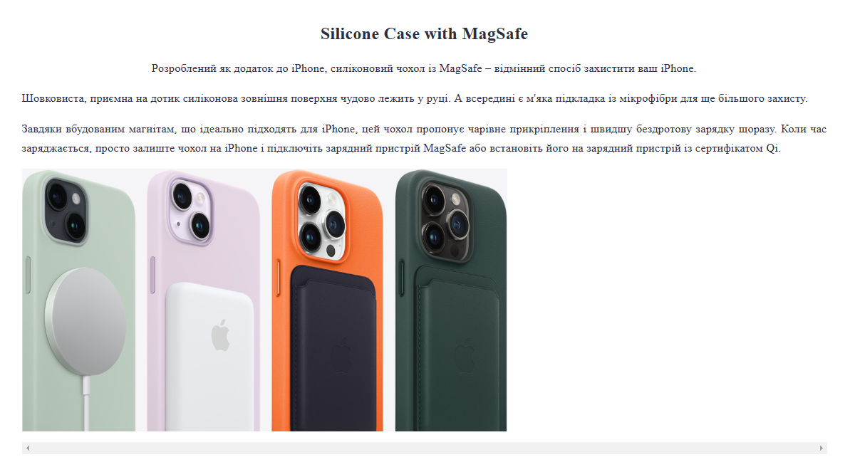 Деякі товари у вкладці "Опис" мають гоизонтальний скроллбар в якому немає необхідності