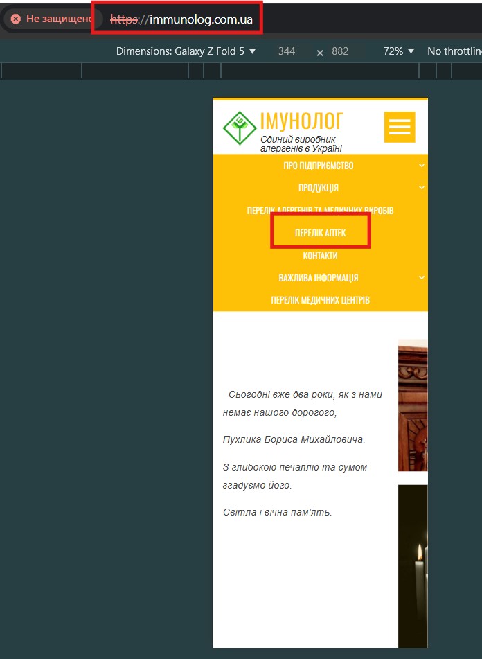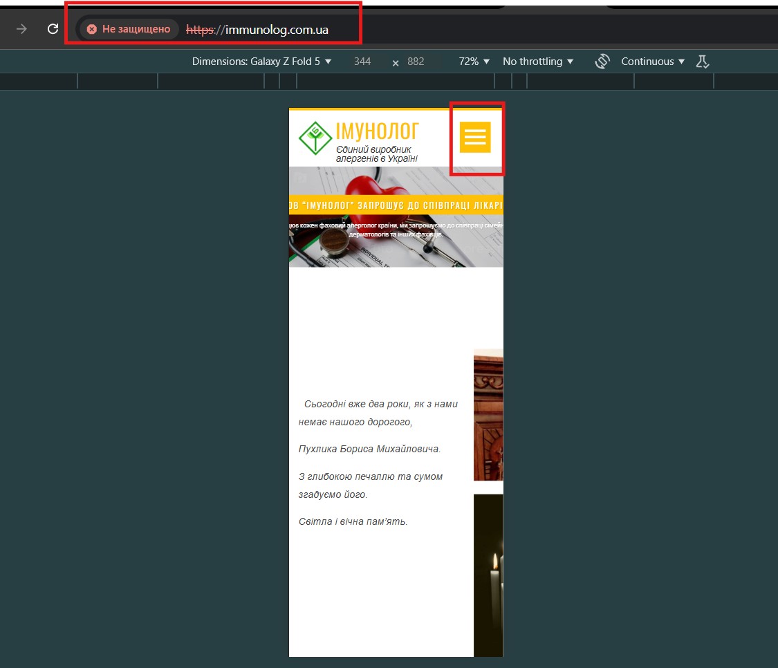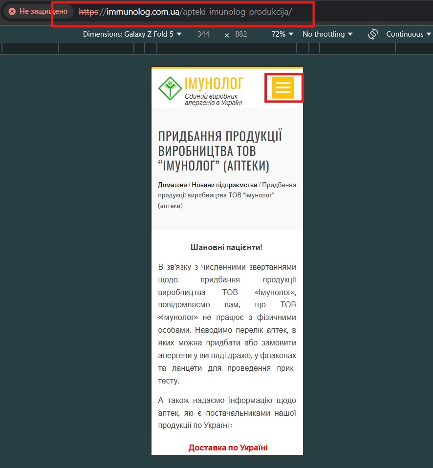 1. Відкрити https://immunolog.com.ua на пристрої Galaxy Z Fold 5