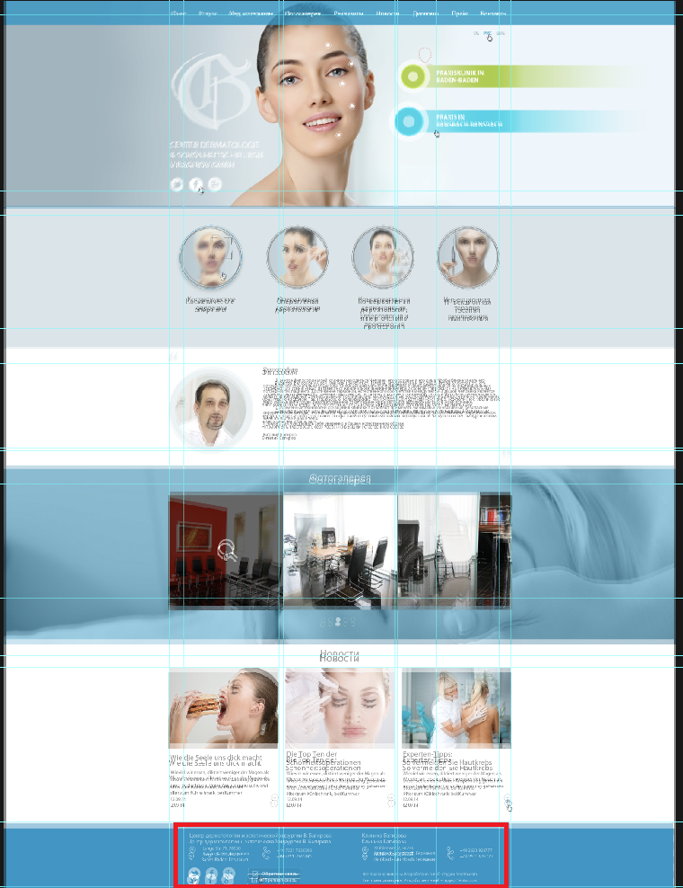 Фактичний результат: значки Facebook, Twitter, Google та текст зміщено вниз відносно початкового положення в макеті