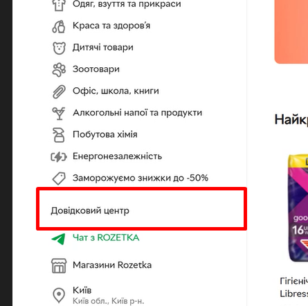 Ожидаемый результат: иконка <icon_name> слева от текста, как и у пункта "Чат з ROZETKA"