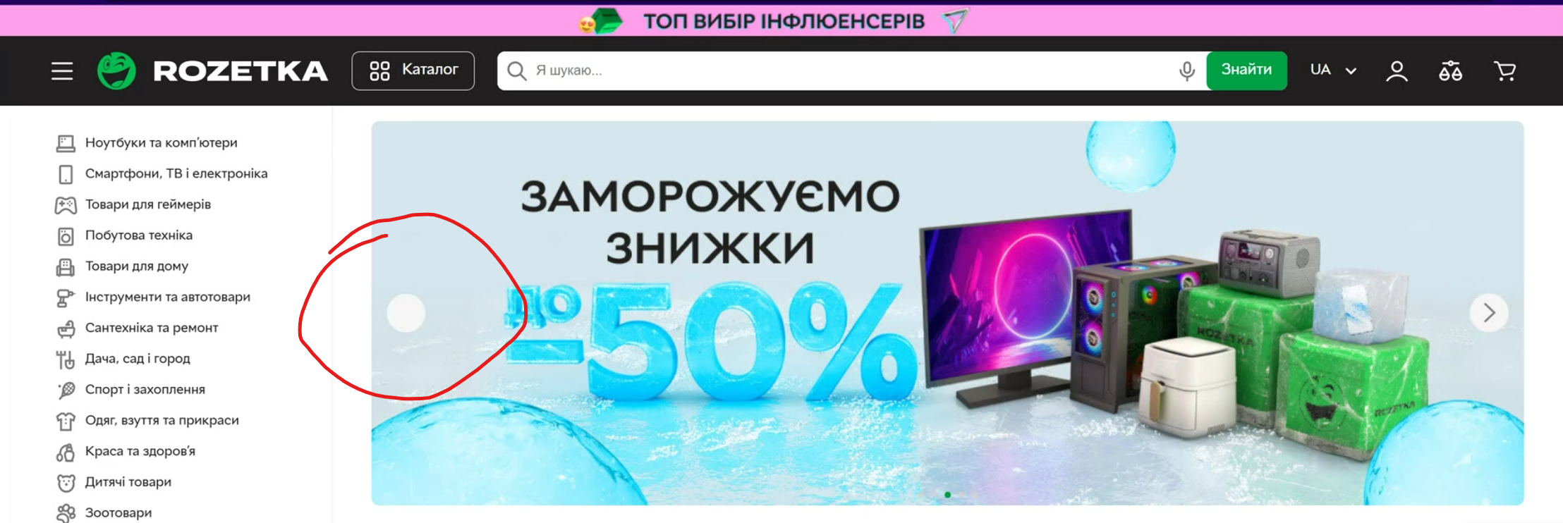 - Locate the main image slider.