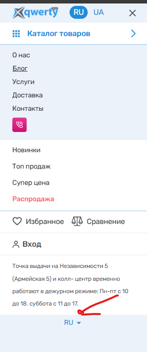 Нельзя поменять язык сайта на мобильной версии сайта при нажатии смены языка на sidebar
