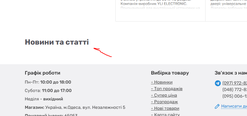Текст секції "Новини та статті" присутній навість якщо в секції немає елементів