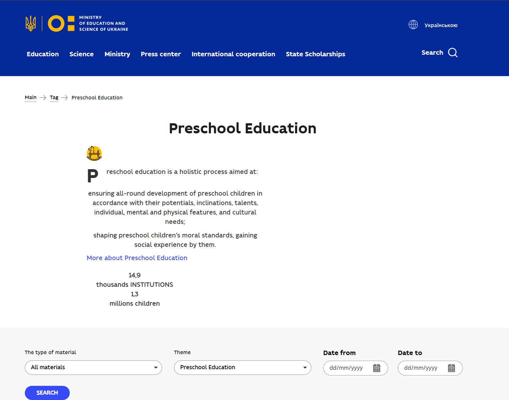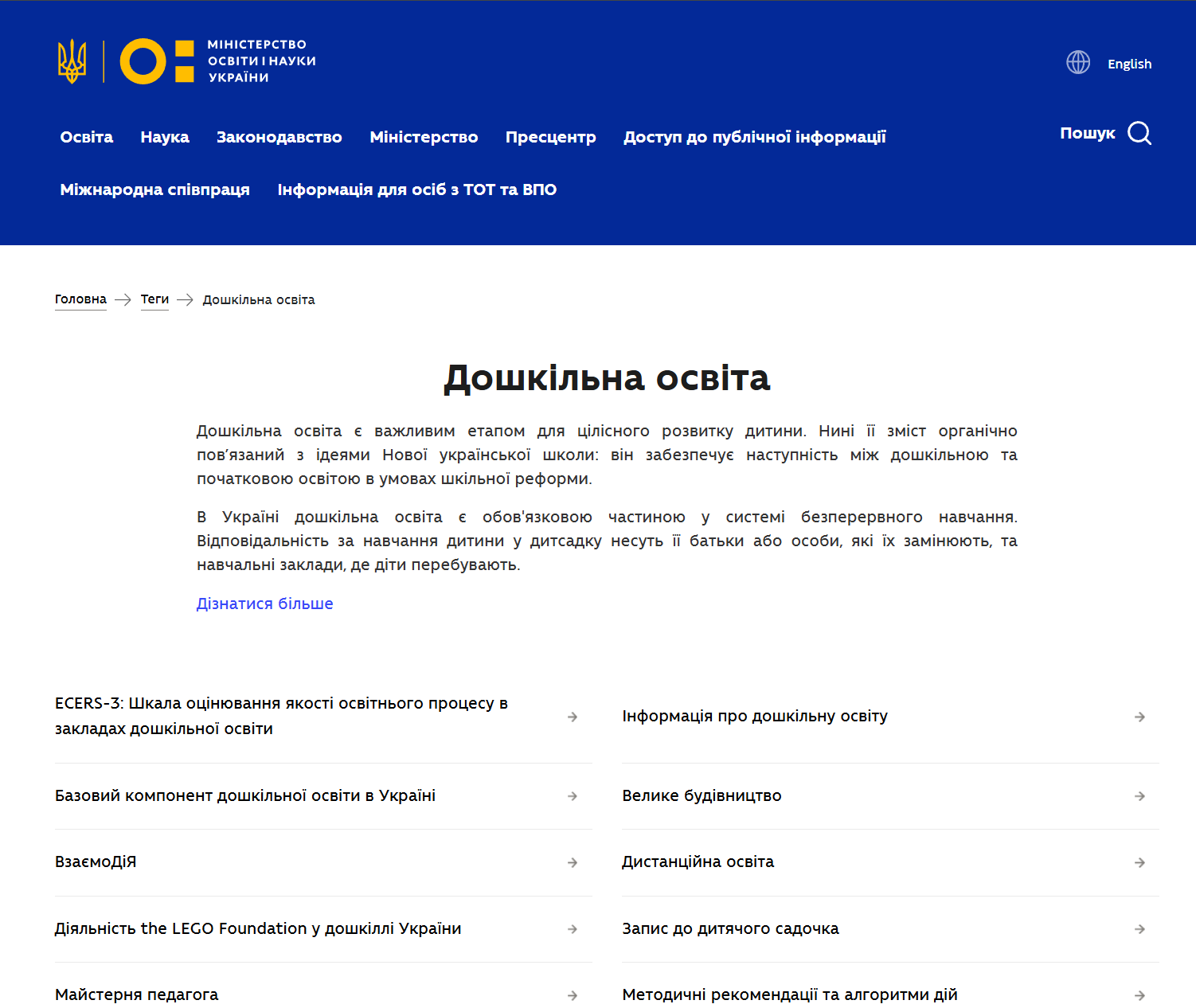 3. Navigate to the "Preschool Education" (https://mon.gov.ua/en/tag/preschool-education?&type=all&tag=preschool-education) page.