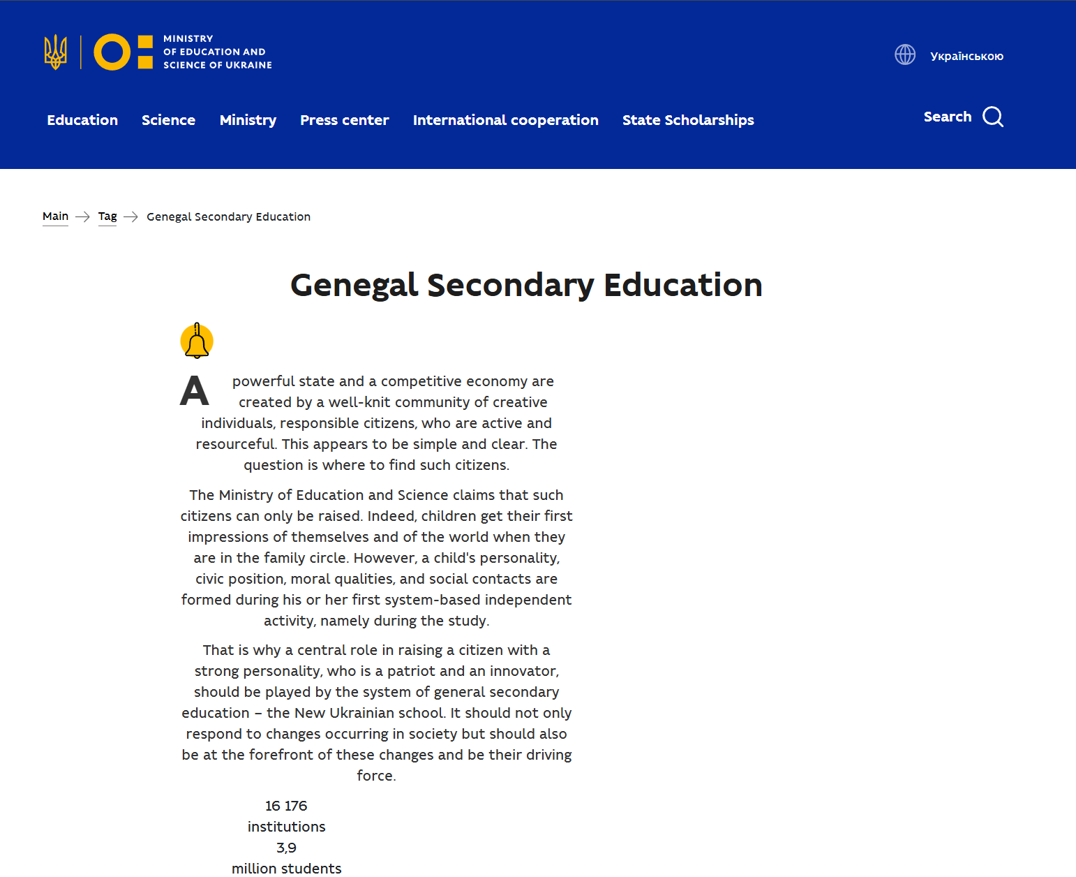 - Open the website https://mon.gov.ua/en/tag/genegal-secondary-education.