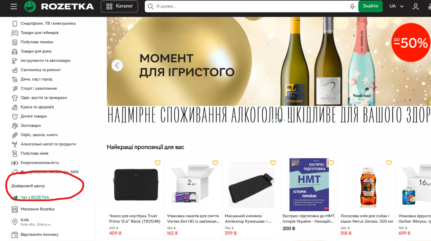 2) Заметить, что кнопка "Довідковий центр" в sidebar отображается без иконки.