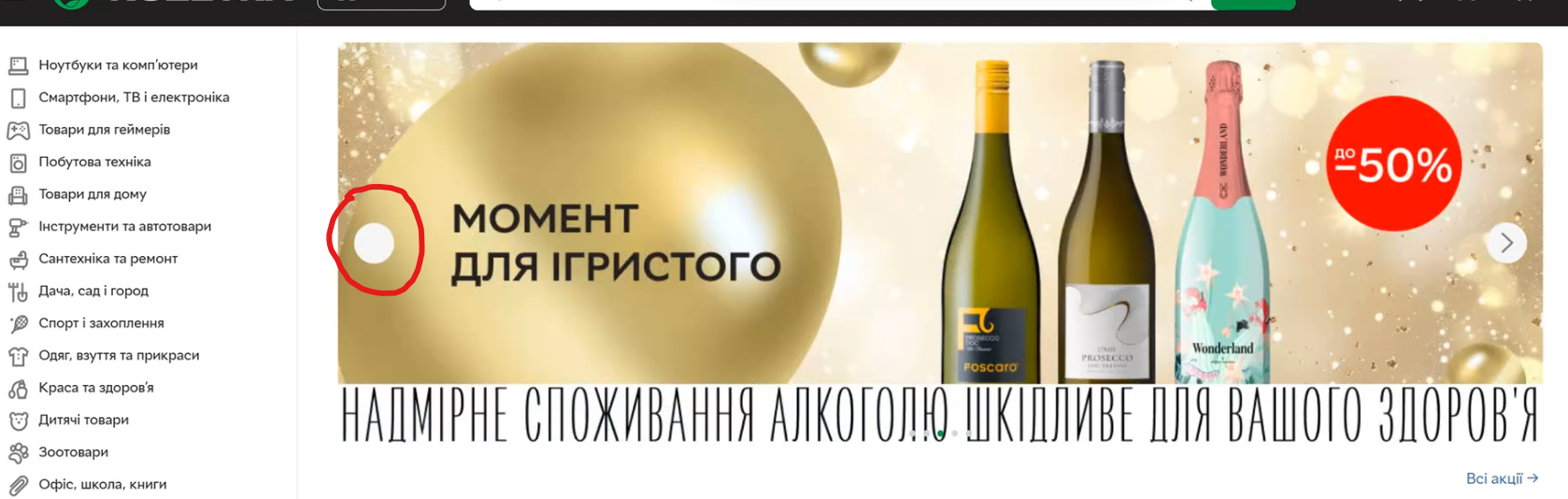 Фактический результат: Левая кнопка для перелистования в верхнем слайдере отображается без иконки.