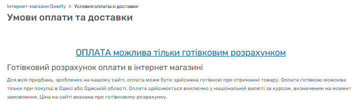 3) В умовах оплати вказано, що "ОПЛАТА можлива тільки готівковим розрахунком"