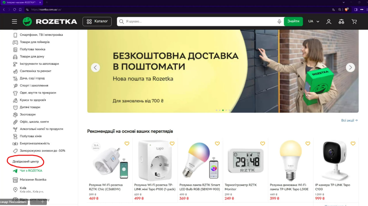 Кнопка "Довідковий центр" нет иконки на главной странице