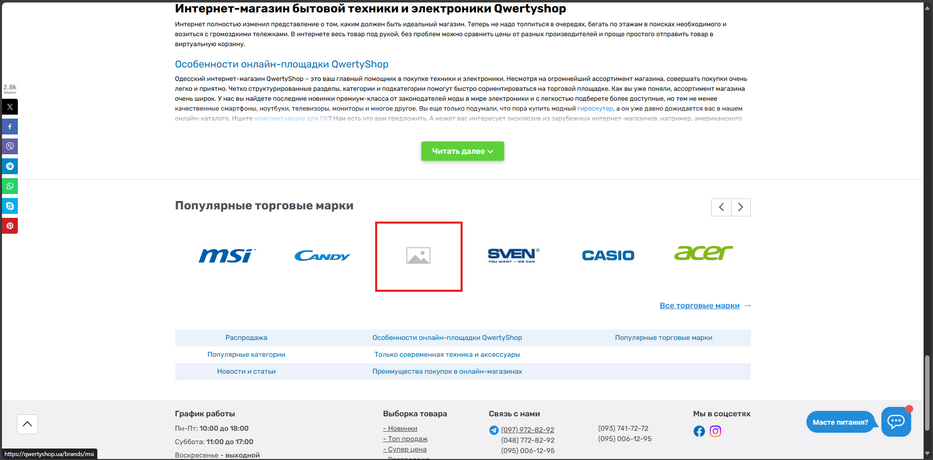2) Прокрутить страницу вниз до раздела "Популярные торговые марки"