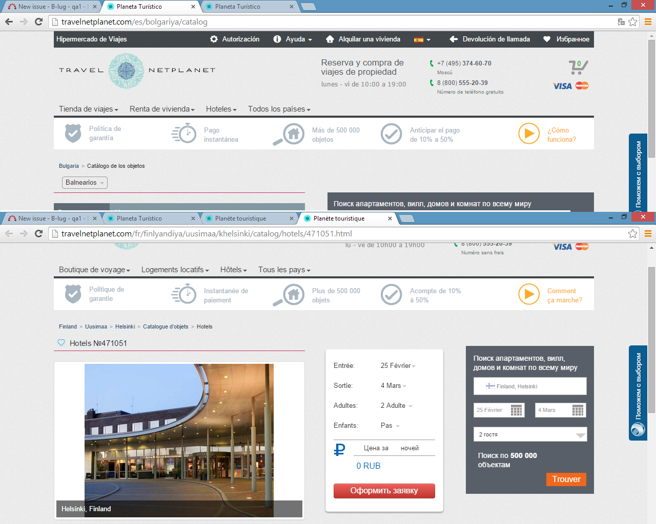 2) Открываем любую страницу, получаем несколько языков на одной странице : французский,английский и русский.