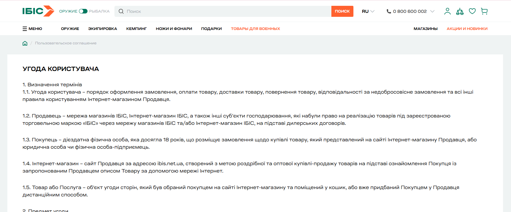 Локалізація у розділі "Пользовательское соглашение" укр.мови, коли обрана мова RU