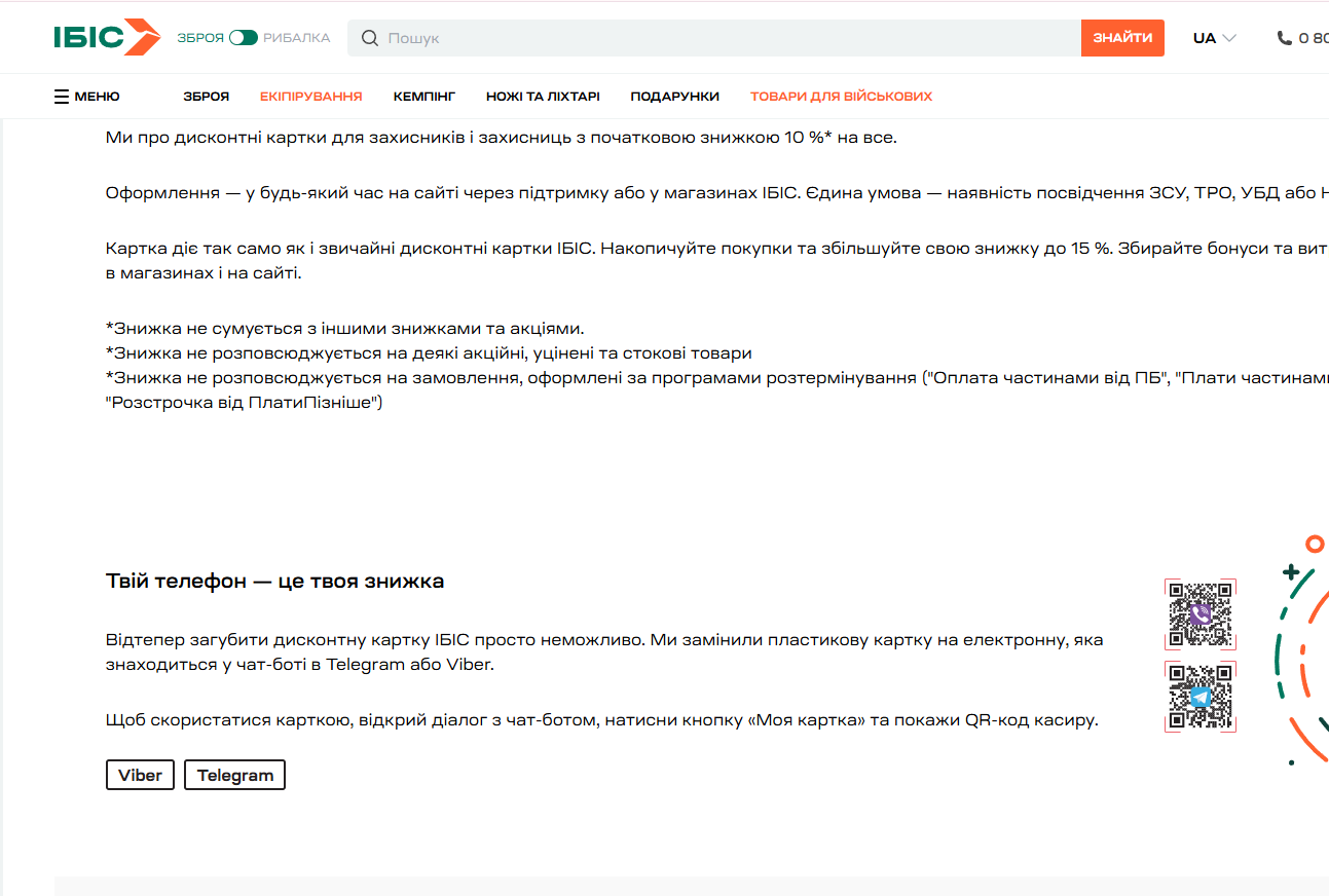 Неклікабельна кнопка "Viber" у розділі "Дісконтна програма"