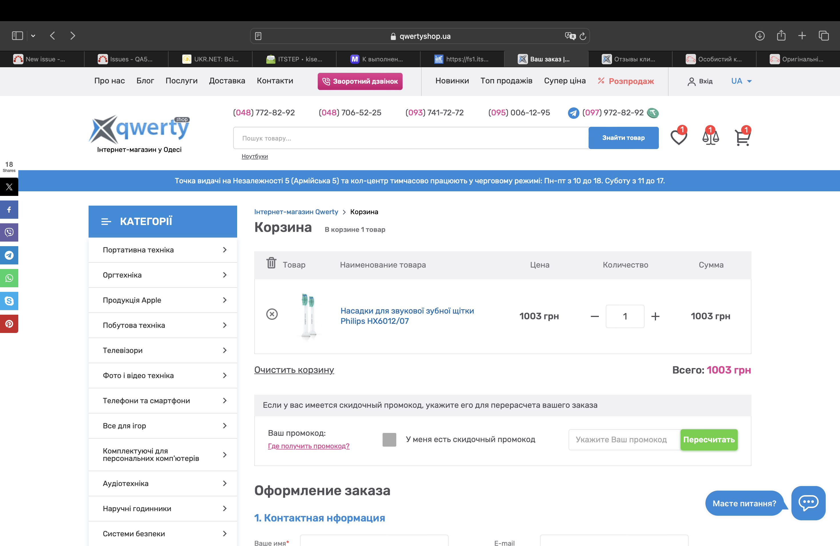 В вкладке Корзина функция "Где найти промокод"выбивает на главную страницу