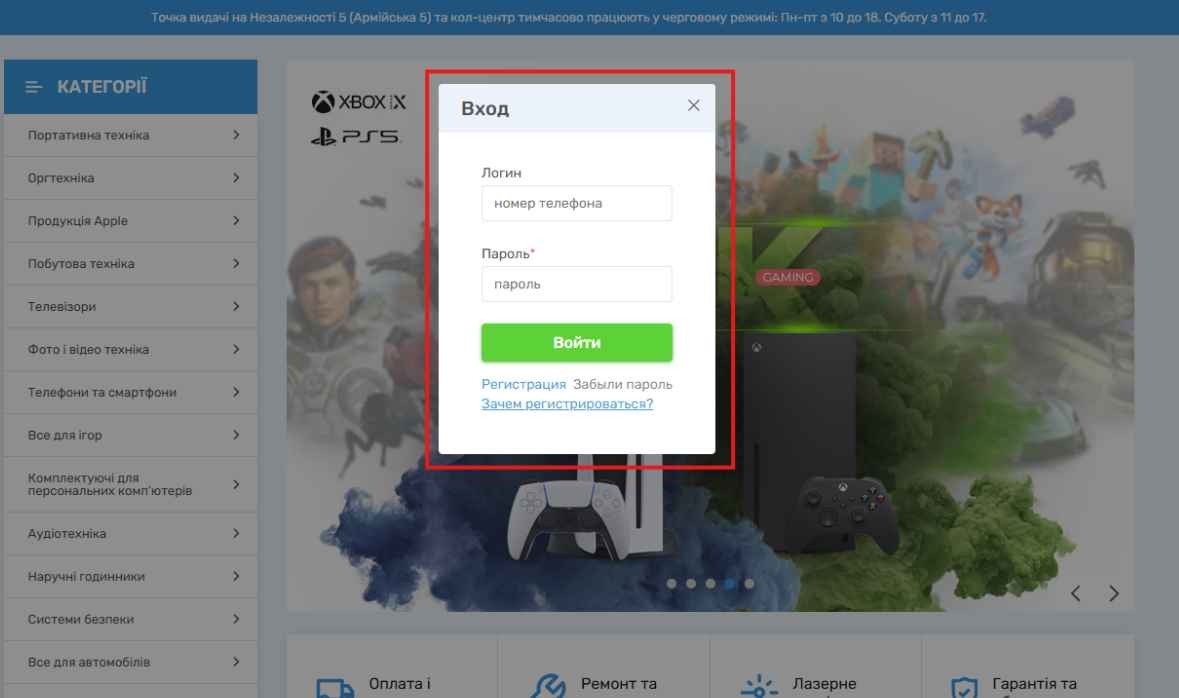 3) Нажать кнопку "Вхід"