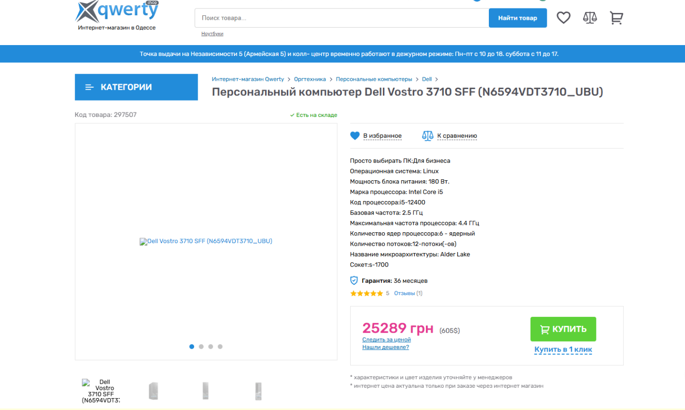 4) Перейти на товар "Персональный компьютер Dell Vostro 3710 SFF"
