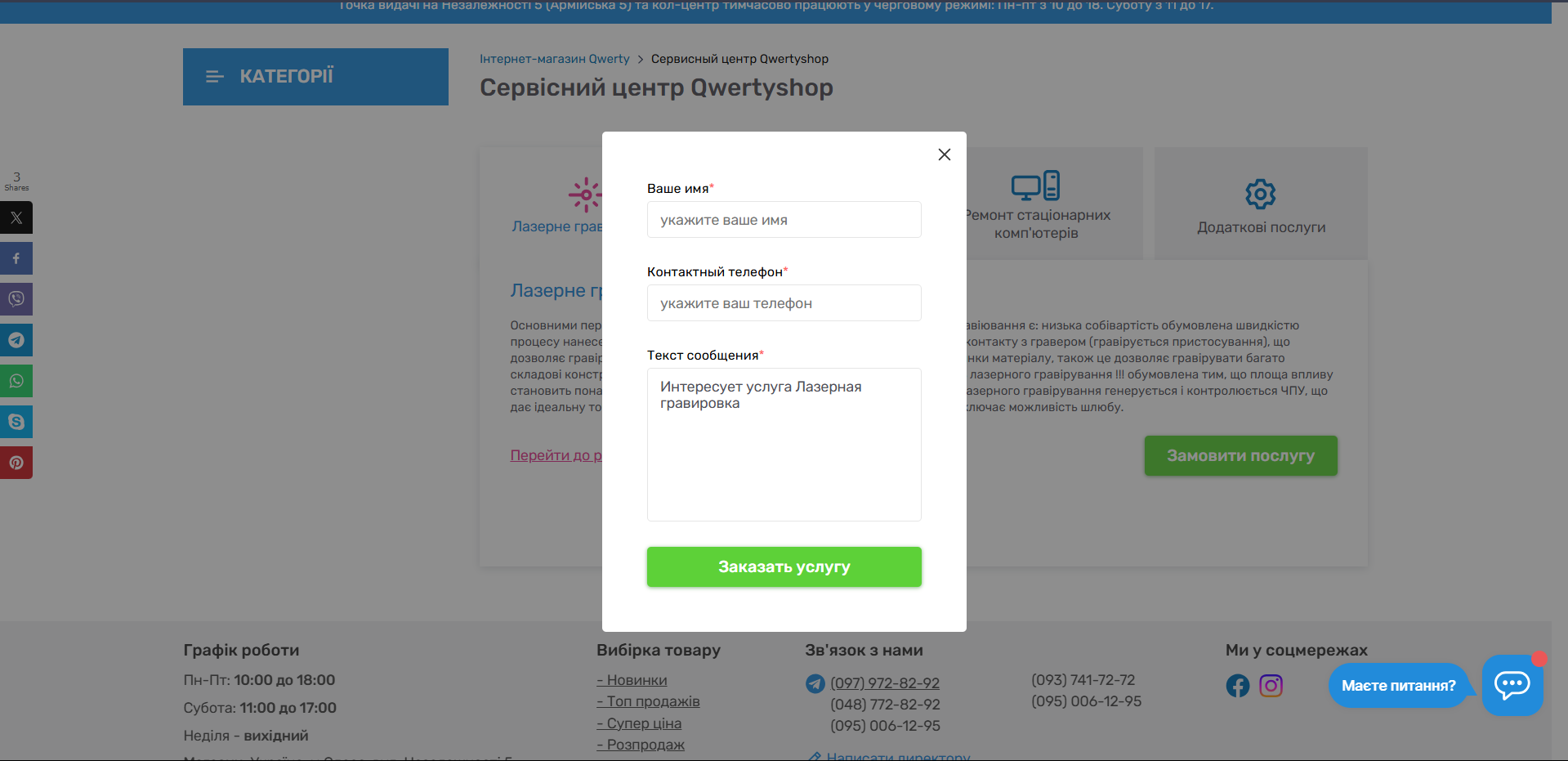 Форма заказа услуги не адаптирована под украинскую локализацию