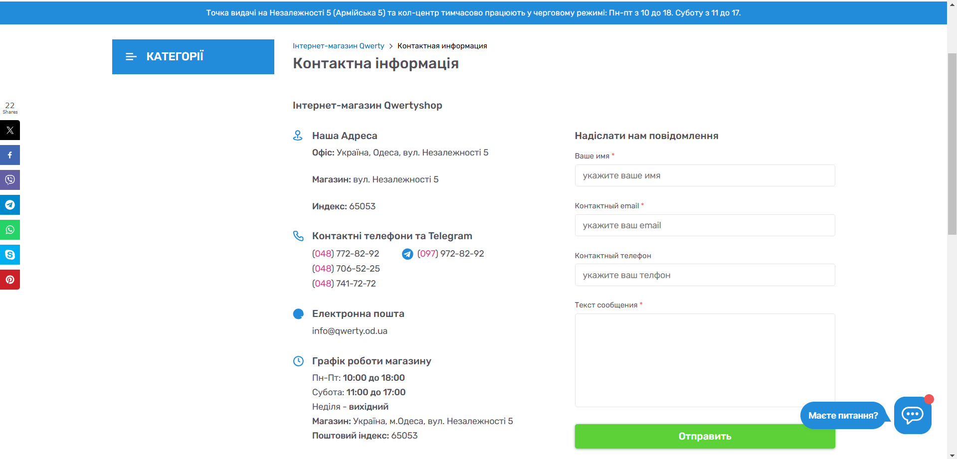 Форма отправки сообщения не адаптирована под украинскую локализацию