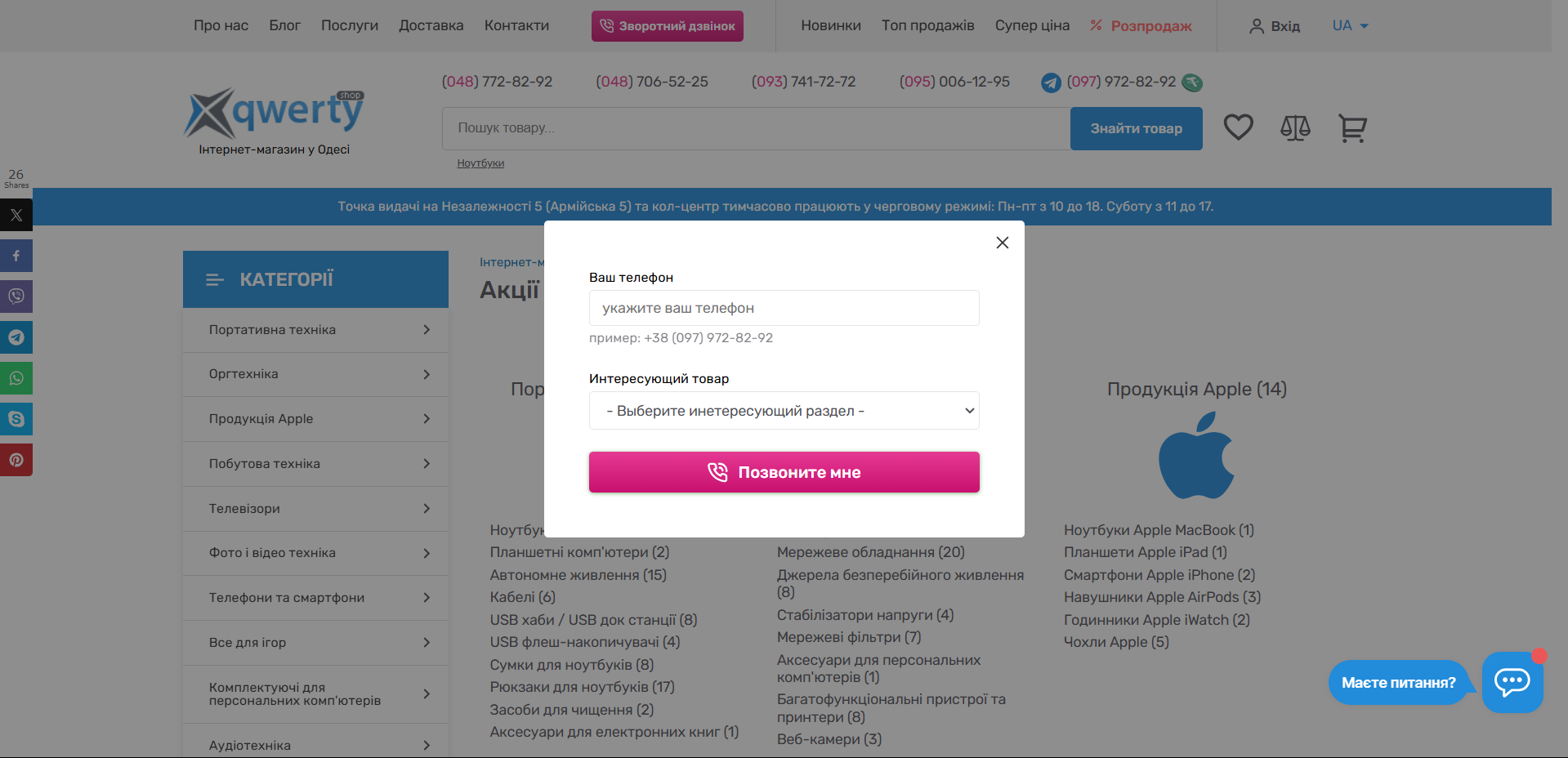 Форма обратного звонка не адаптирована под украинскую локализацию