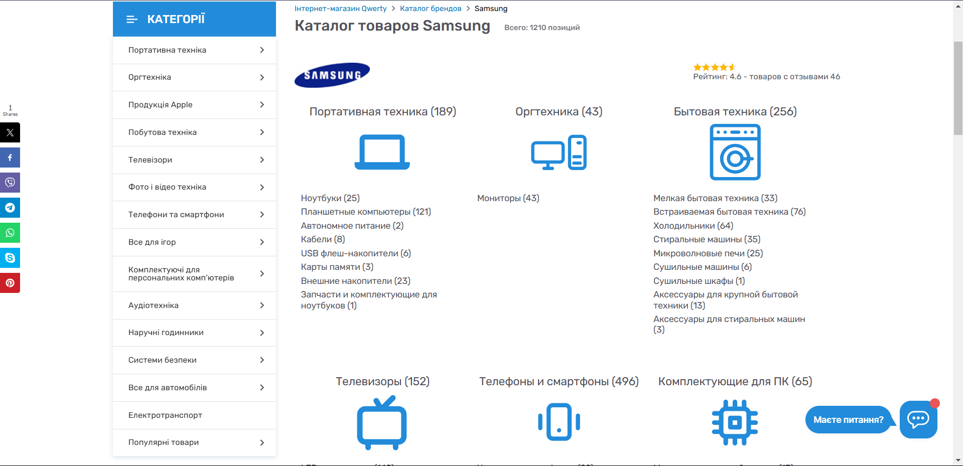 Каталог товаров бренда не адаптирован под украинскую локализацию