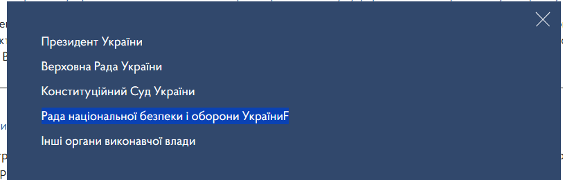 Очікуваний результат: відсутність літери F у пункті "Рада національної безпеки і оборони УкраїниF"