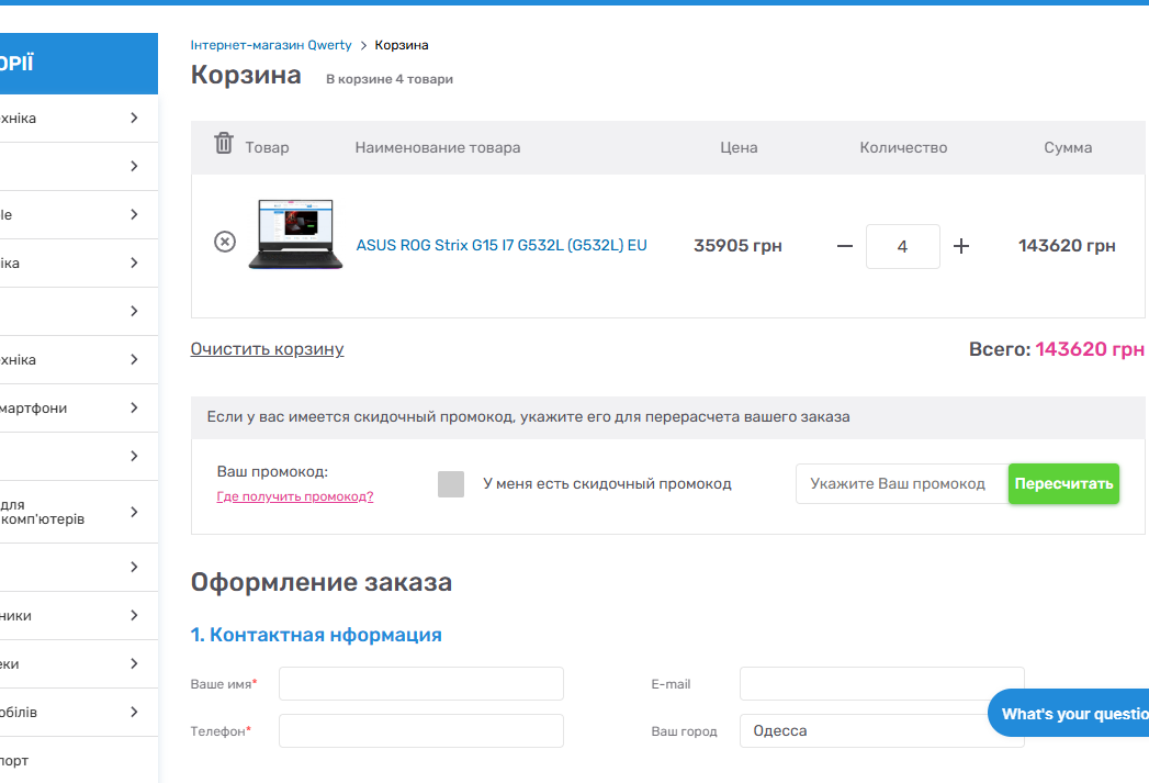 1) Перейти на сторінку будь-якого товару, який можна придбати (наприклад https://qwertyshop.ua/noutbuk-asus-rog-strix-g15-i7-g532l-g532l-eu-326309)