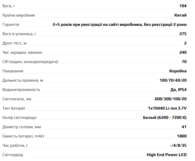 5) Проскроліти до «Характеристики» :далі – «Водонепрникність» ;«Колір світлодіода»