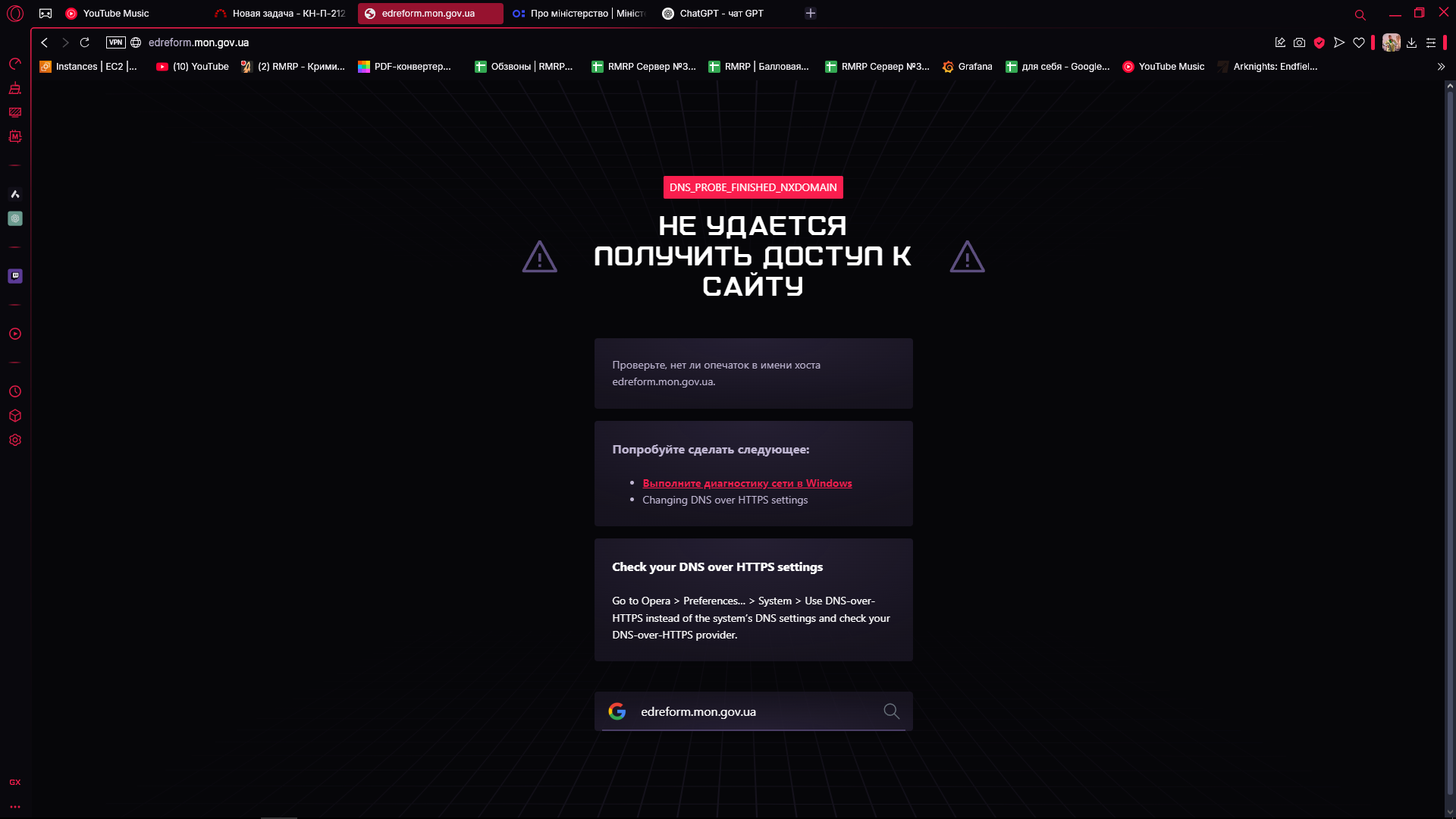 Фактический результат : При переходе , кидает ошибку, что не удается получить доступ.