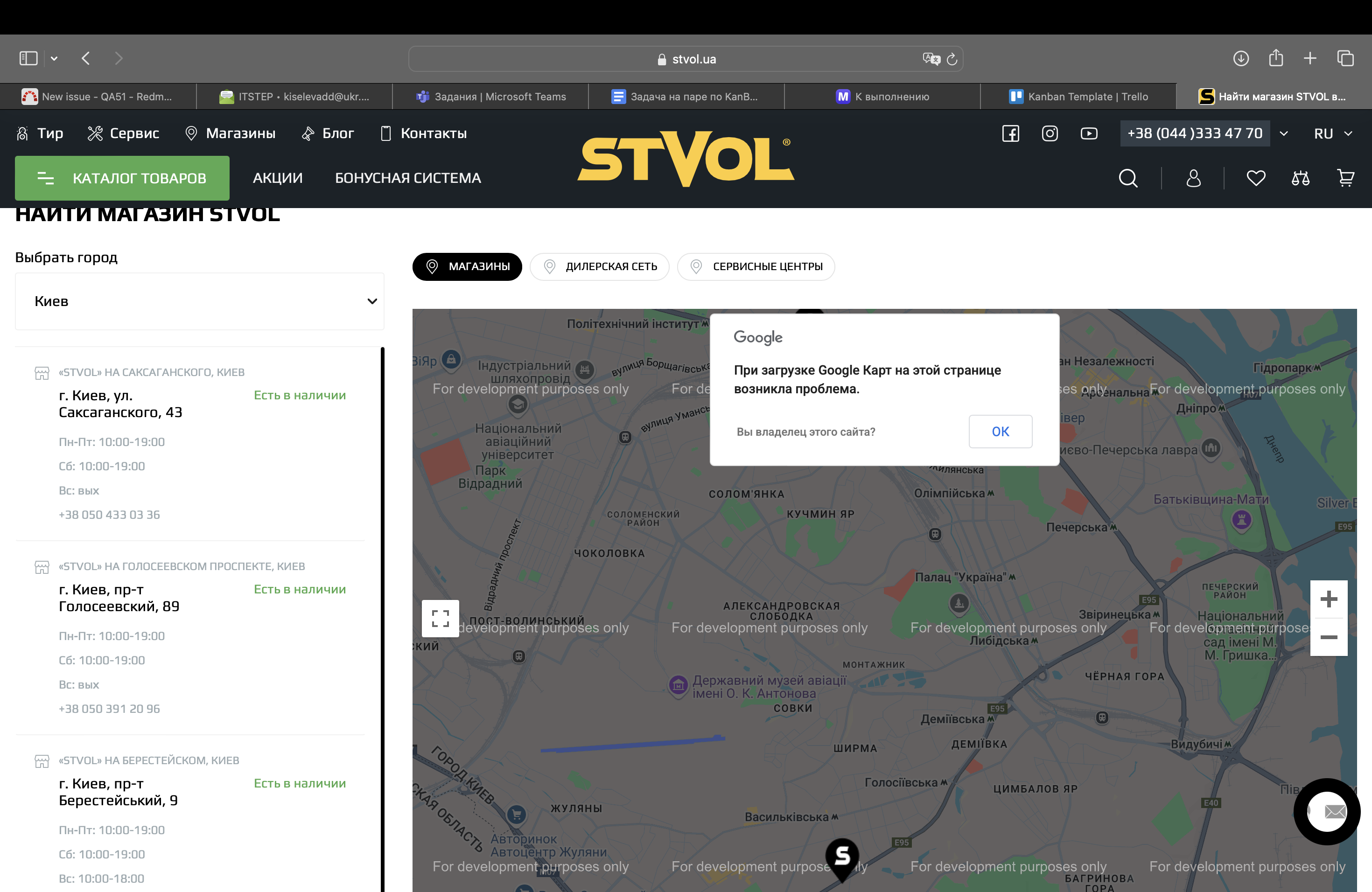 • Subject changed from Карта на сайте Stvol.ua не действующая to Невозможность загрузки Google карт в разделе "Магазины"