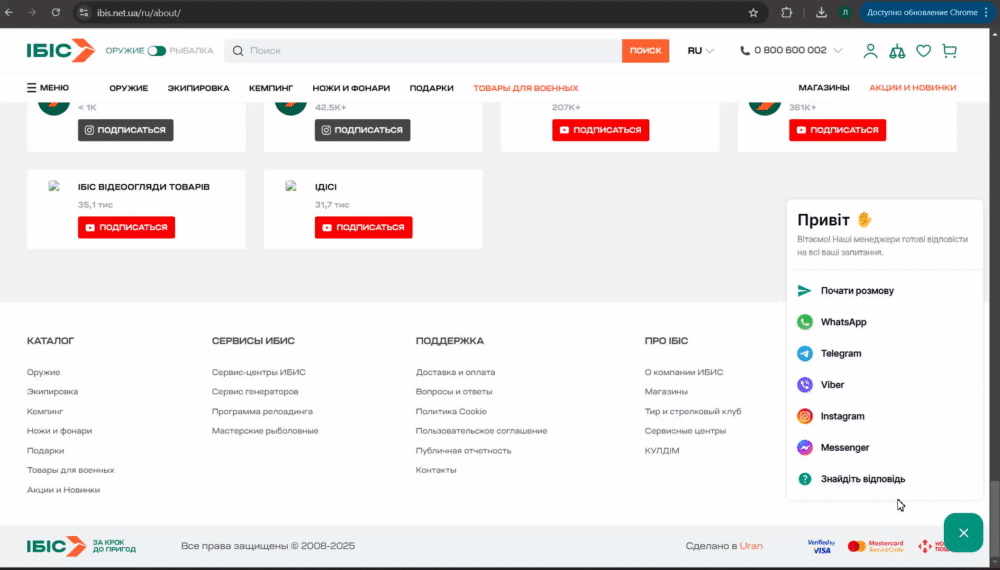 Нет кликабельности Viber в "зеленой" кнопке "Связаться с нами" в правом нижнем углу страницы