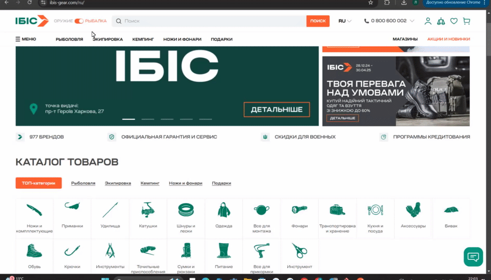 - ФАКТИЧЕСКИЙ РЕЗУЛЬТАТ* : при переходе в каталог товаров "Оружие" отображаются товары с каталога "Рыбалка"