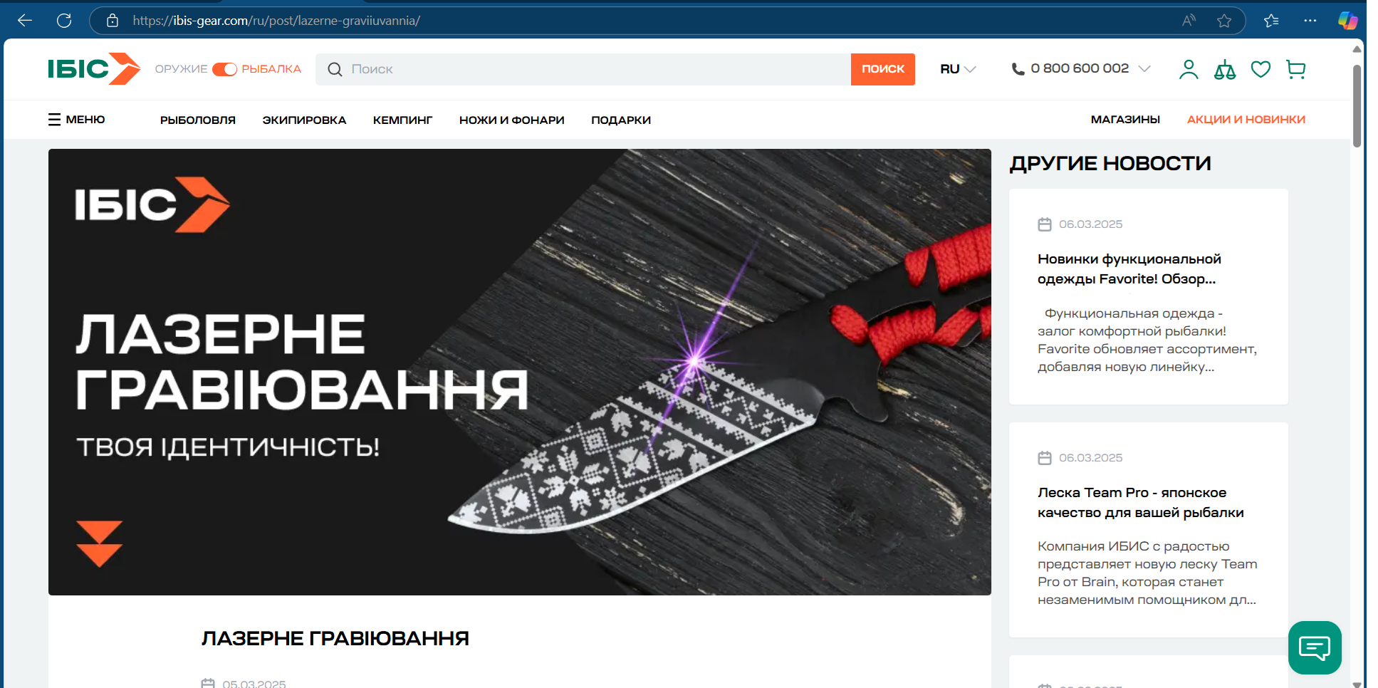 1. Перейти за посиланням на головну сторінку сайту - https://ibis-gear.com/ru/