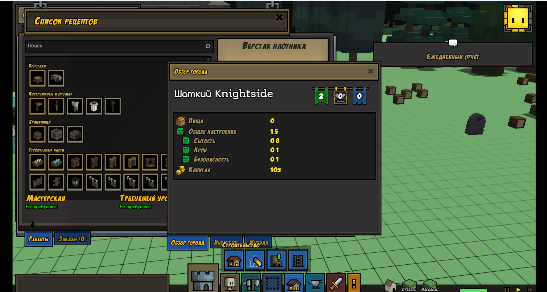 2. Открыть меню строительства