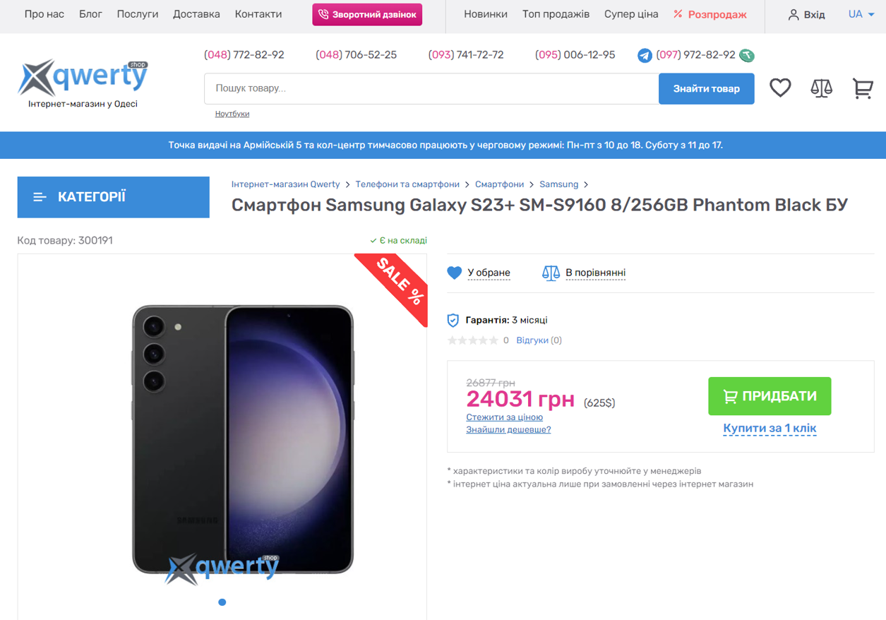 Открыть страницу https://qwertyshop.ua/smartfon-samsung-galaxy-s23-sm-s9160-8-256gb-phantom-black-300191